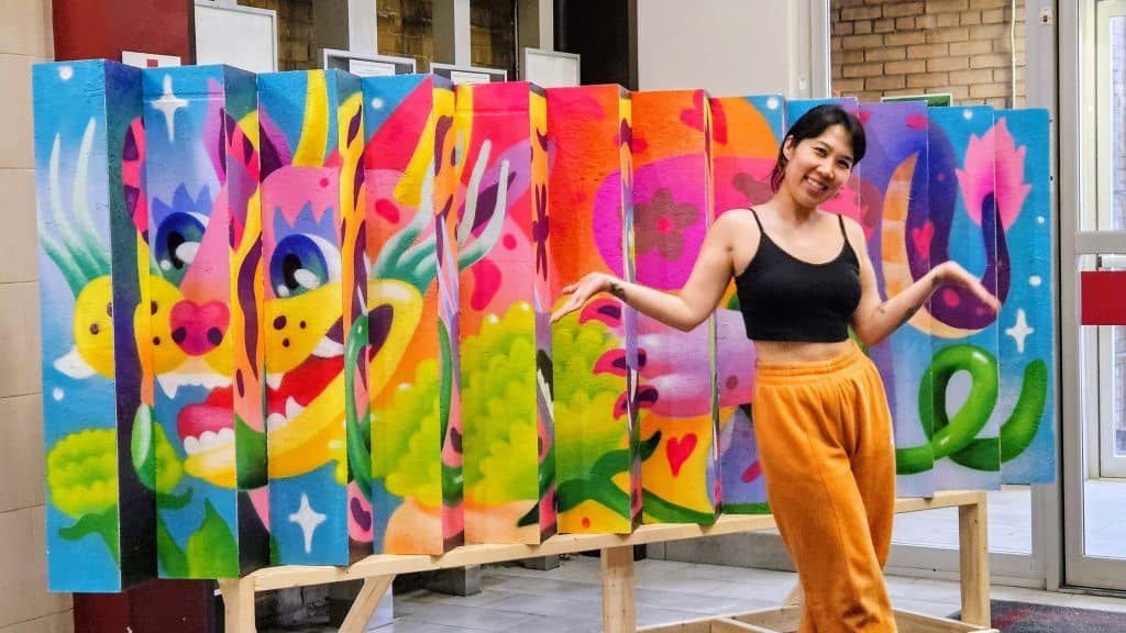 Jieun Kim (AKA. June) is Toronto based, Korean born painter, tattooer, and activist public muralist who is interested in creating safe spaces through street art.