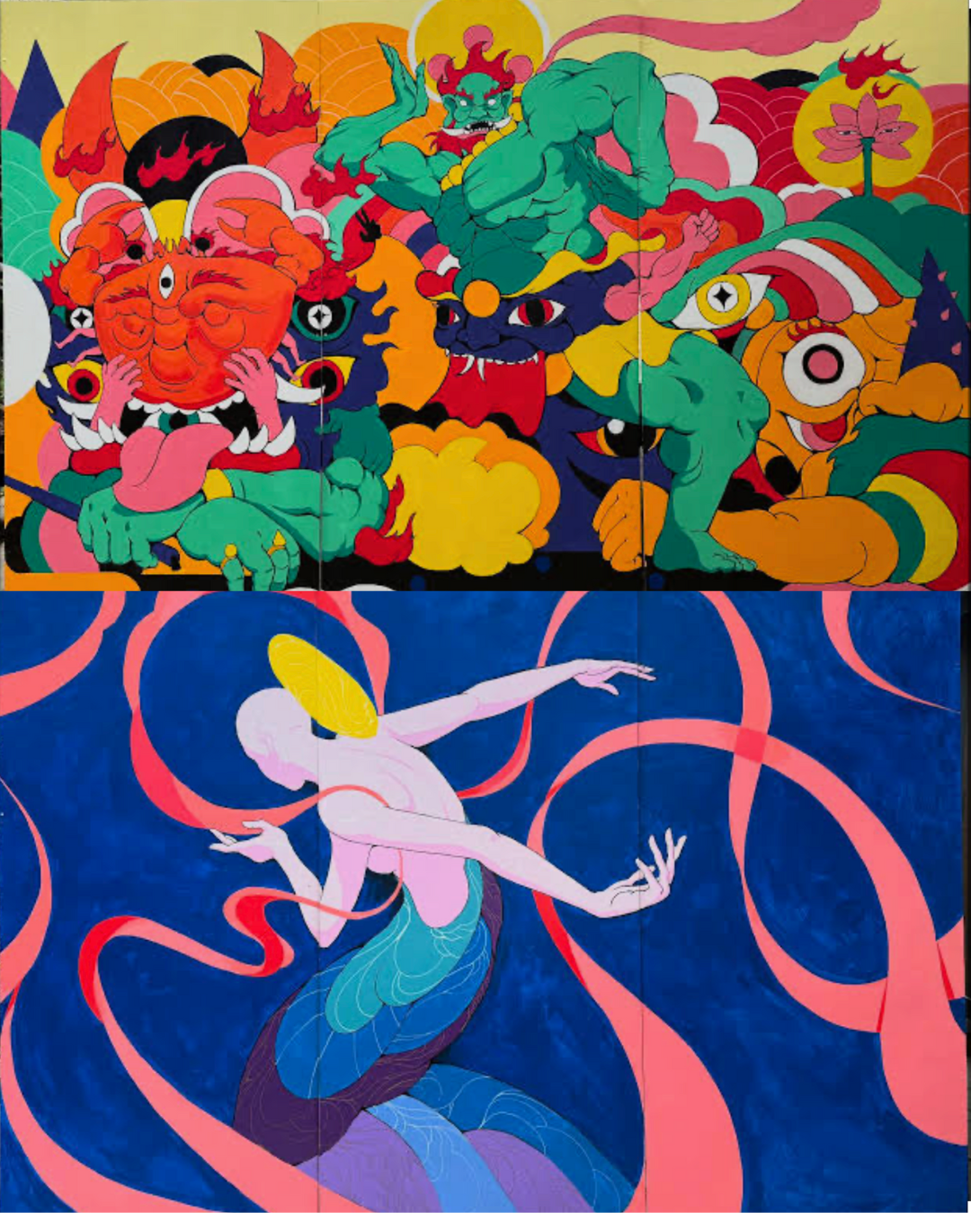Menshen (Door Gods) is an art installation featuring the Chinese culture of Menshen, which are divine guardians of doors and gates with a queer, trans, and Malaysian twist. The doors feature trans and queer humanized interpretations of the East and Southeast Asian gods Azure Dragon and White Tiger set in ancient times, and the Vermilion Bird and Black Tortoise set during the present day.