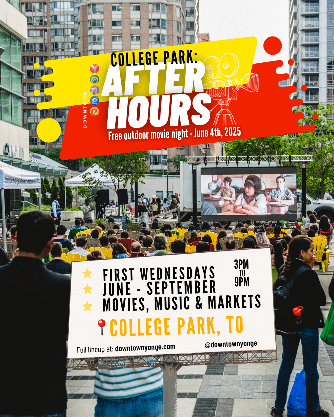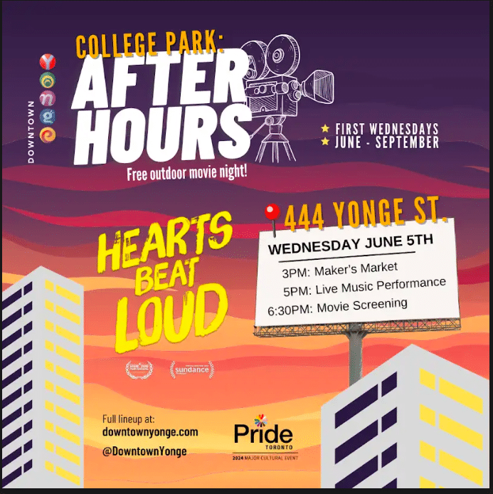 You’re invited to join the Downtown Yonge community at a variety of free movie screenings at College Park this summer. Presented by the Dow…